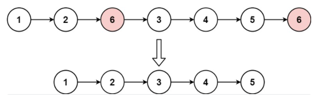 输入:head = [1,2,6,3,4,5,6], val = 6