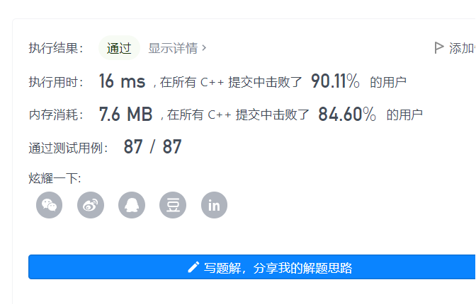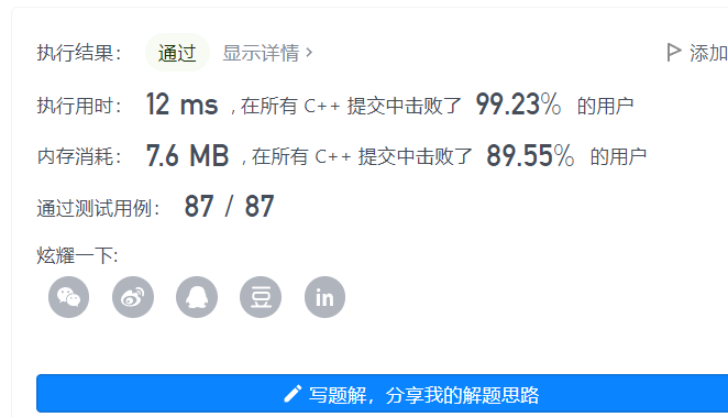 运行时间很慢,打败了5%的人,内存也打败了5%的人,我以为自己的方法有问题,后面看题解的方法,和我的方法类似,但是执行的效率很高,代码也很简洁