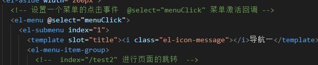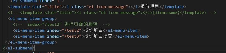 <el-menu-item index="/test2">报价项目</el-menu-item> 使用Index的索引 值进行页面的跳转,
