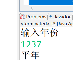 package sr5; import java.util.Scanner; public class t3 { public static void pd(int year) { if (year % 4 == 0 && year % 100 != 0 || year % 400 == 0) { System.out.println("闰年"); } else { System.out.println("平年"); } } public static void main(String[] args) { Scanner input = new Scanner(System.in); System.out.println("输入年份"); pd(input.nextInt()); } }