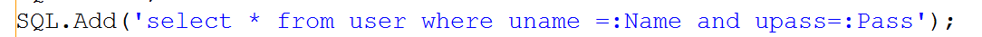 SQL.Add('select * from [user] where uname =:Name and upass=:Pass');