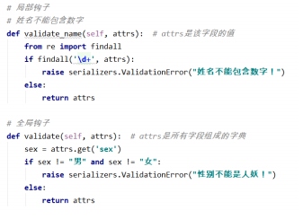 - 全局钩子:validate(self, 所有校验的数据字典)