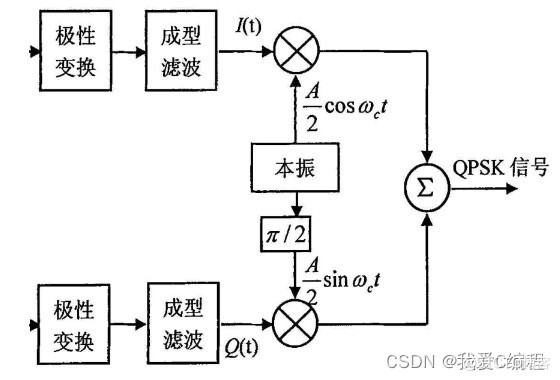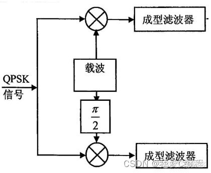 QPSK调制模块将二进制数据流转换为符号序列,并将每个符号映射到特定的相位状态。QPSK调制使用四个相位状态,分别为0度、90度、180度和270度。在QPSK调制中,每个符号代表两个比特,因此,输入二进制数据流的速率必须是符号速率的两倍。