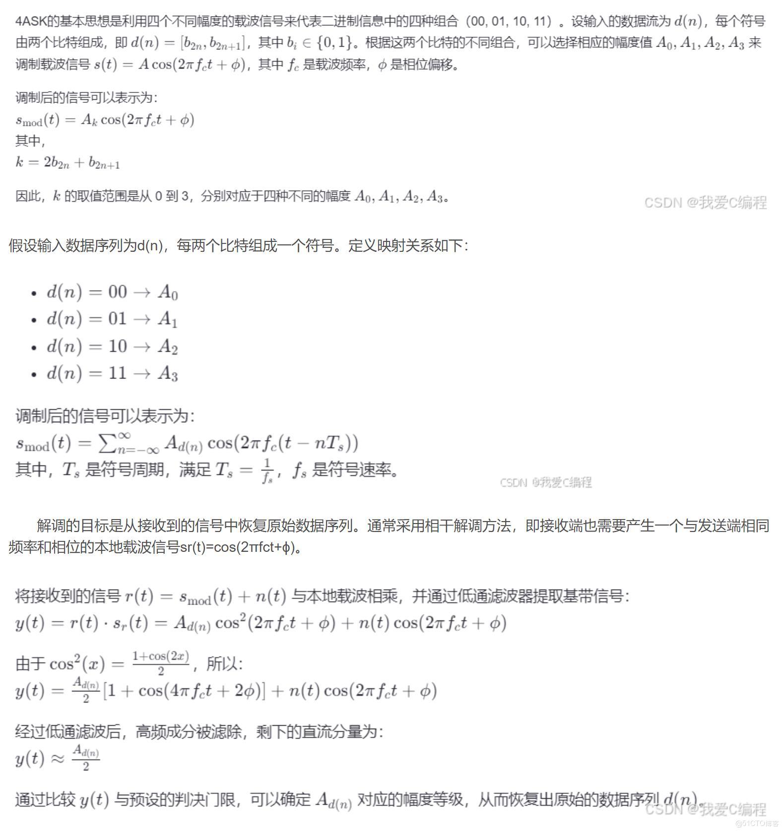在现代通信系统中,数字调制技术被广泛应用于无线通信、卫星通信以及有线通信等领域。其中,振幅键控(Amplitude Shift Keying, ASK)是一种简单的数字调制方式,通过改变载波信号的幅度来表示不同的数据位。四进制振幅键控(4-ASK)是ASK的一种扩展形式,它使用四个不同的幅度等级来传输两个比特的信息。