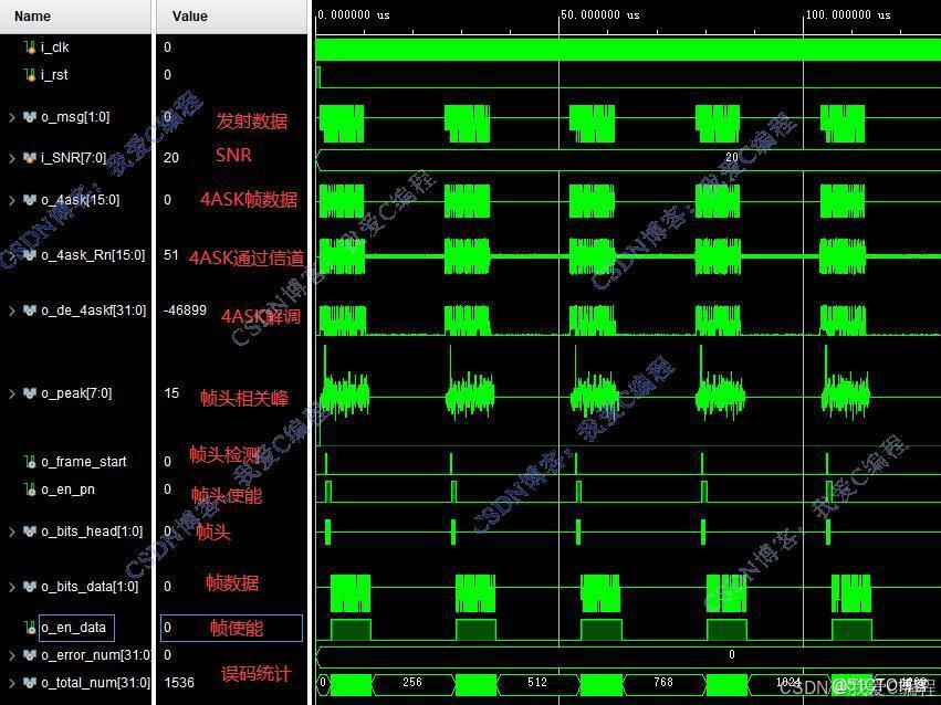 基于FPGA的4ASK+帧同步系统verilog开发,包含testbench,高斯信道,误码统计,可设置SNR