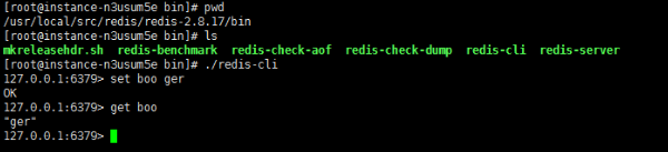 $ cd src $ ./redis-cli redis> set foo bar OK redis> get foo "bar"