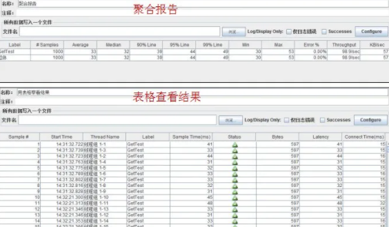 jmeter聚合报告及表格查看结果: