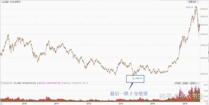 2013年这次的最后一跌非常绝望,伴随着银行钱荒,记得当时余额宝年化收益高达7%,而且还爆出光大银行60亿贷款违约事件。感兴趣的读者可以百度搜索下当时的新闻报道,现在都能感受到那时的悲观情绪。
