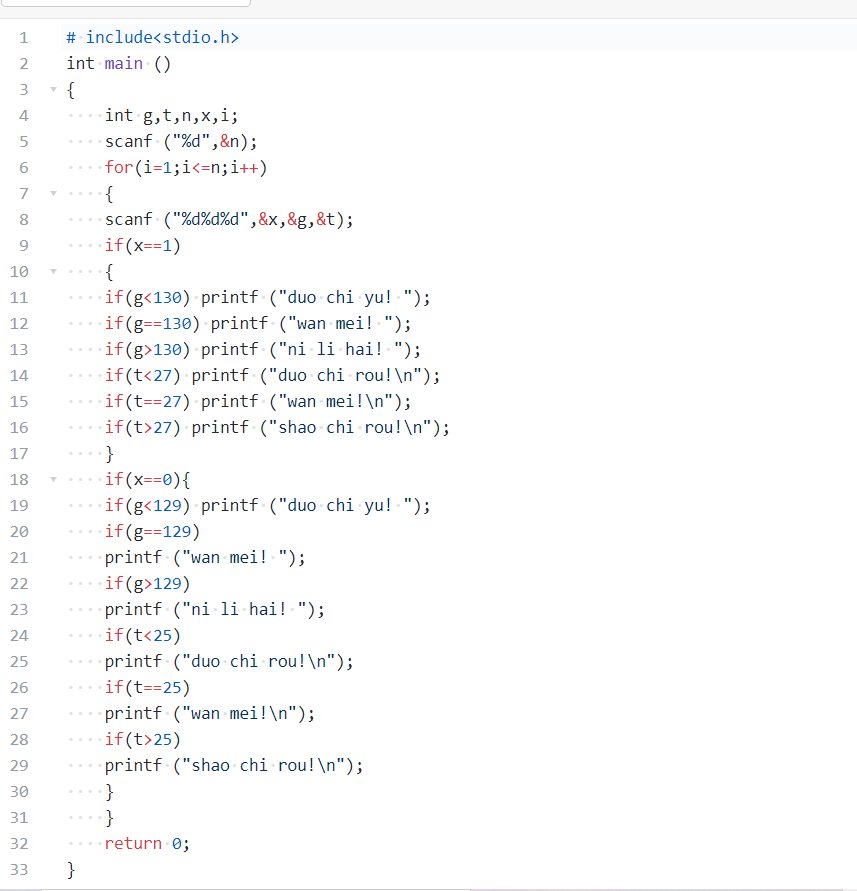 数据表达:根据题目要求运用了g,t,n,x,i这些整形变量。