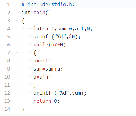 对于给定的正整数N,需要你计算 S=1!+2!+3!+...+N!。