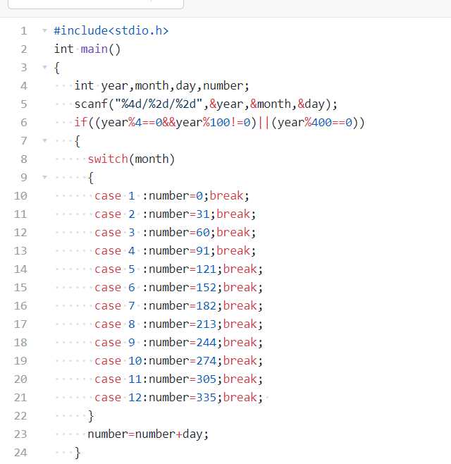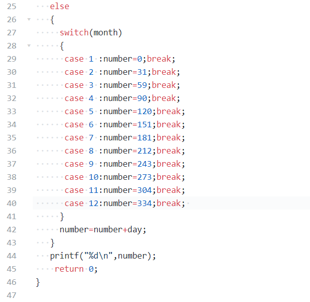 数据处理:switch语句的运用。利用switch语句把闰年和非闰年的每月天数表示出来,再得出当天是该年的第几天。