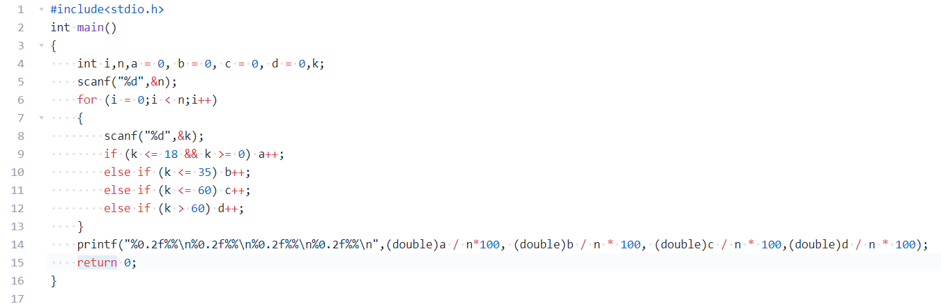 某医院想统计一下某项疾病的获得与否与年龄是否有关,需要对以前的诊断记录进行整理,按照0-18、19-35、36-60、61以上(含61)四个年龄段统计的患病人数占总患病人数的比例。