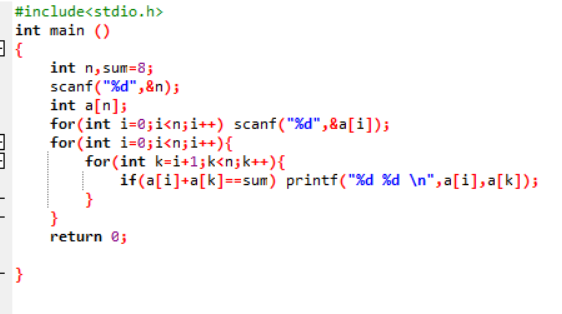 解法一:采用穷举法,从数组中任意取出两个数字,计算两者之和是否为给定的数字。