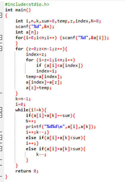 解法二:对数组中的每个数字arr[i]都判别Sum-arr[i]是否在数组中。