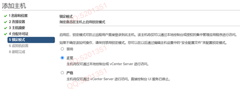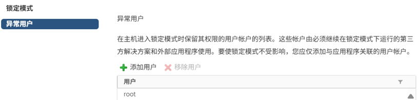 于是回想起这几天唯一的变更就是将 Exsi 加入到 VMware-VCSA 中了, 想起之前在添加主机时有一个【锁定模式】的步骤,我当时选择了【正常】