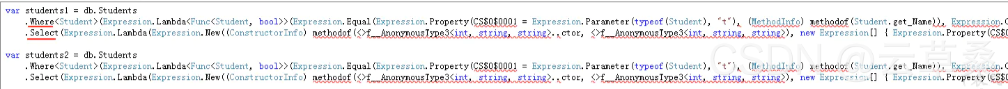 生成了一模一样的代码。(由于是编译后的,好多乱七八糟的代码。我们只看Where和Select关键字就知道,使用的都是点标记。)