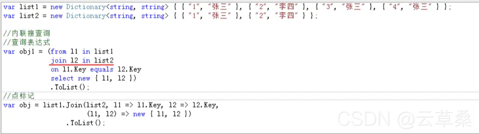 var list2 = new Dictionary<string, string> { { "1", "张三" }, { "2", "李四" }, { "3", "李四" }, { "4", "张三" } };