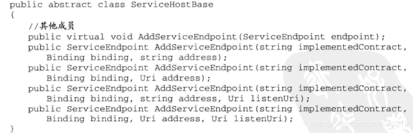 定义宿主时使用的是契约的实现类,也即服务类,添加终结点到宿主的使用的是契约接口。