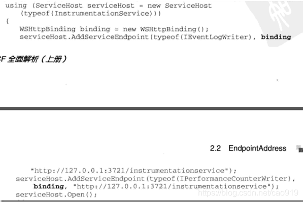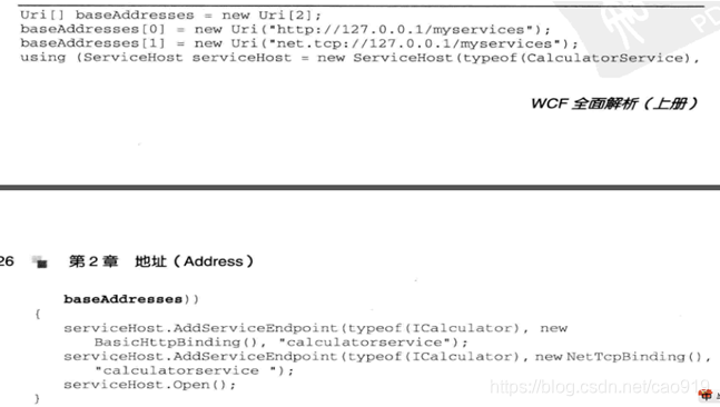1.6当一个服务同时实现了两个契约时,需要共享相同的地址,那么必须保证其绑定是同一个。方法是new一个绑定供两个终结点使用。
