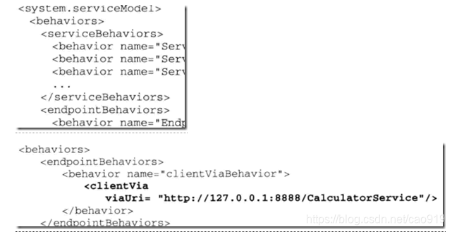 2和4被定义为特性。3只能通过配置,1可以声明和配置。1.服务行为,主要用于service behaviorConfiguration="" 。3.终结点行为主要用于终结点的endpoint endpointConfiguration=""