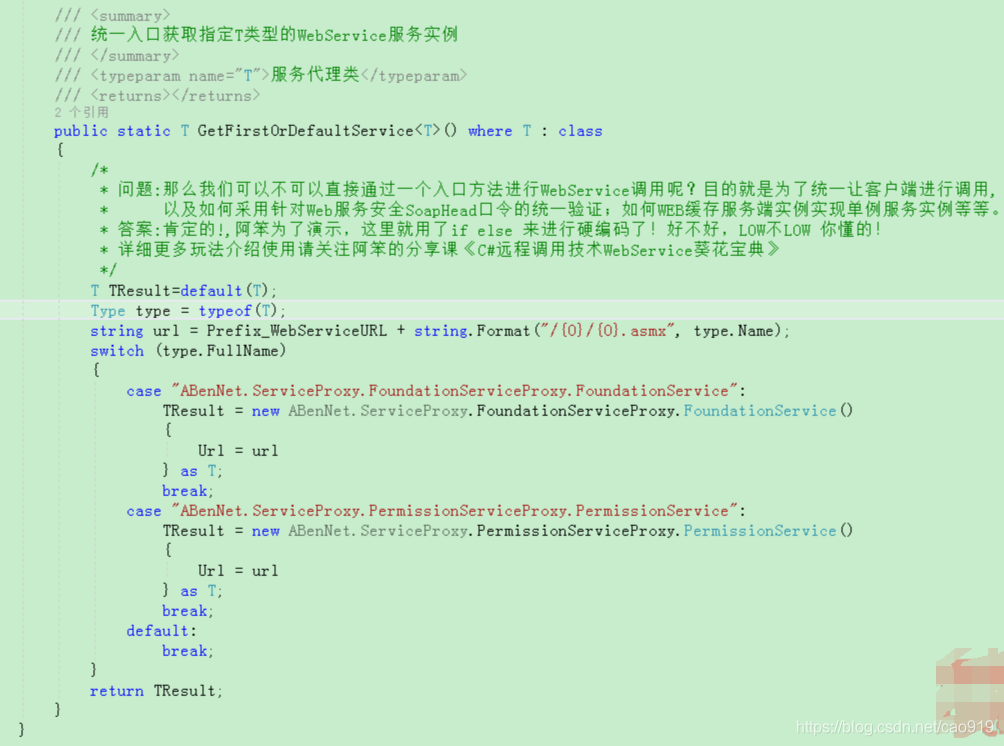 在此插播一条硬广告:下一堂分享课程阿笨计划将给大家带来《C#远程调用技术WebService葵花宝典》,课程的重点将给大家分享一下“C# WebService两种不同引用使用方式”,“WebService如何使用异步调用”以及“关于C# WebService如何让客户端以安全的方式进行调用目前常用几种的解决方案”等等。阿笨尽量给大家带来一些干货分享!