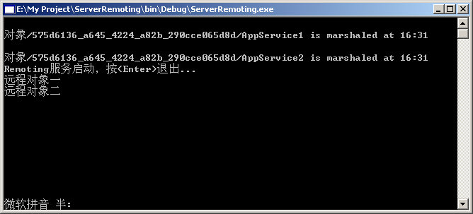 注册对象的方法基本上和SingleTon模式相同,只需要将枚举参数WellKnownObjectMode改为SingleCall就可以了。RemotingConfiguration.RegisterWellKnownServiceType(