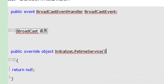 注意:EventWrapper因为要重写InitializeLifetimeService()方法,所以仍然要继承MarshalByRefObject类。