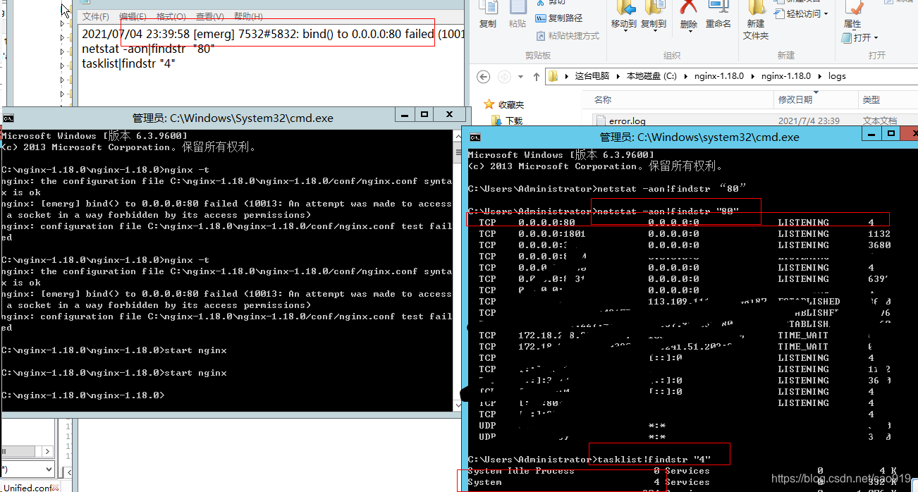 nginx: [emerg] bind() to 0.0.0.0:80 failed (10013: An attempt was made to access a socket in a way forbidden by its access permissions)