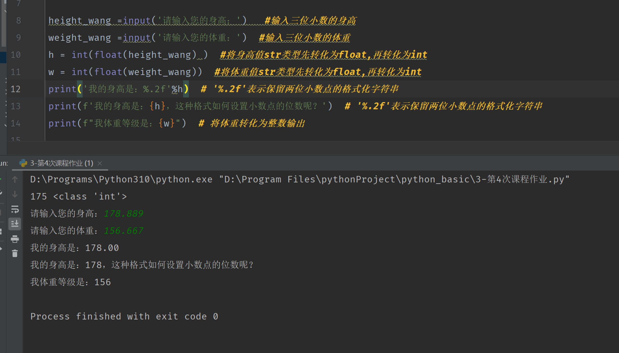 本期作业:#使用input****输入一个小数,转换成整数,保留两位小数并运用格式化字符输出整数,再输出小数。