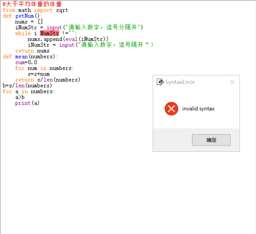 1,书写错误,将“iNumStr”写成了“NumStr”,无效语法,如图