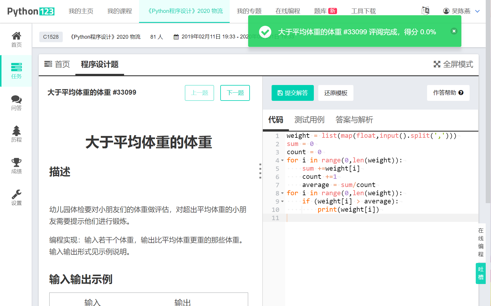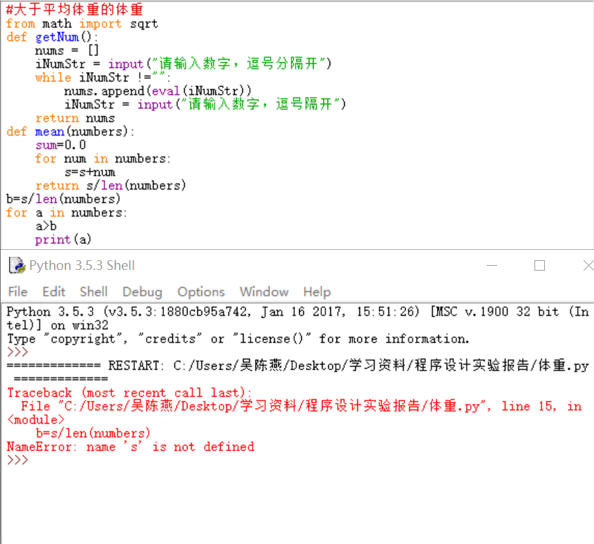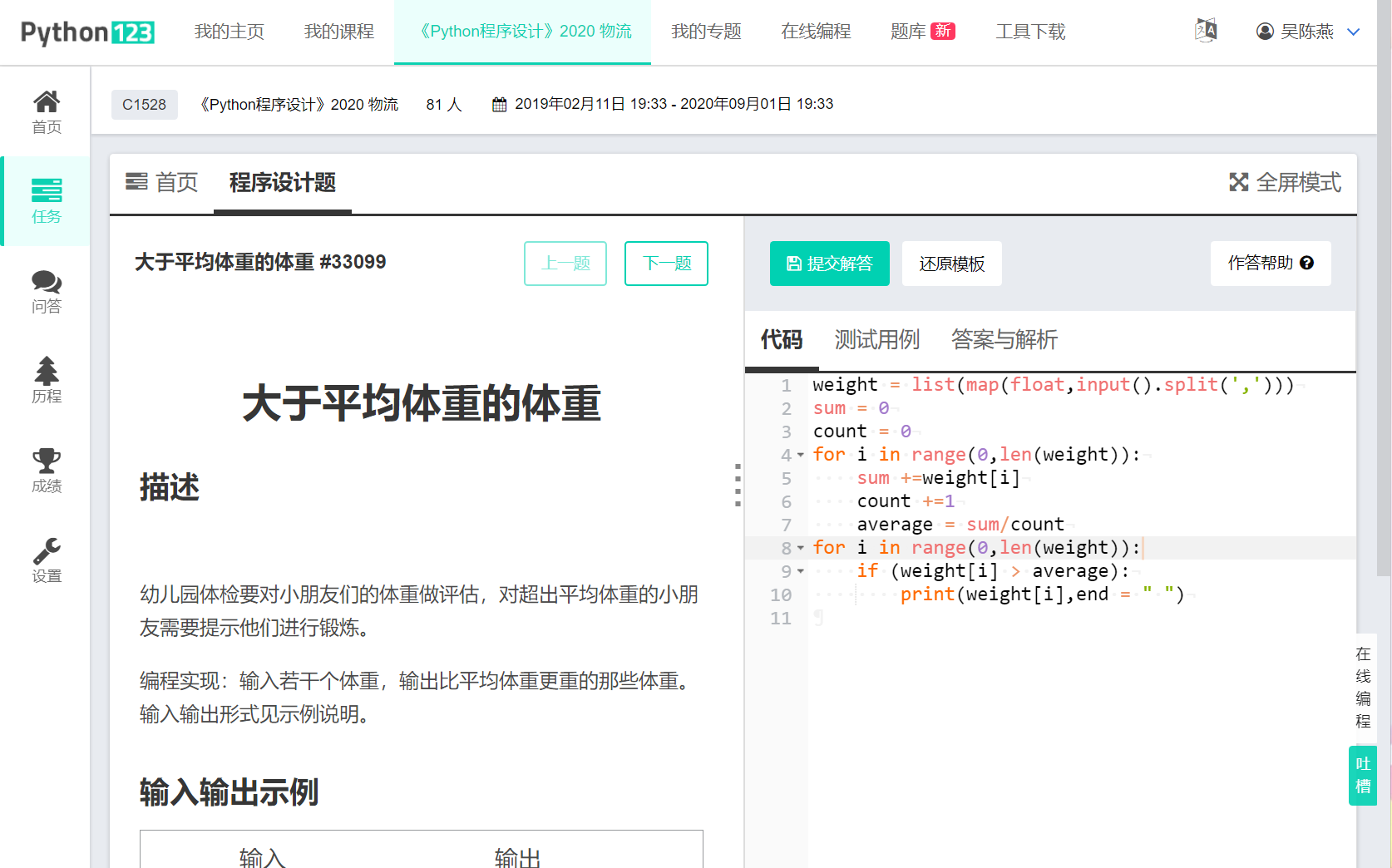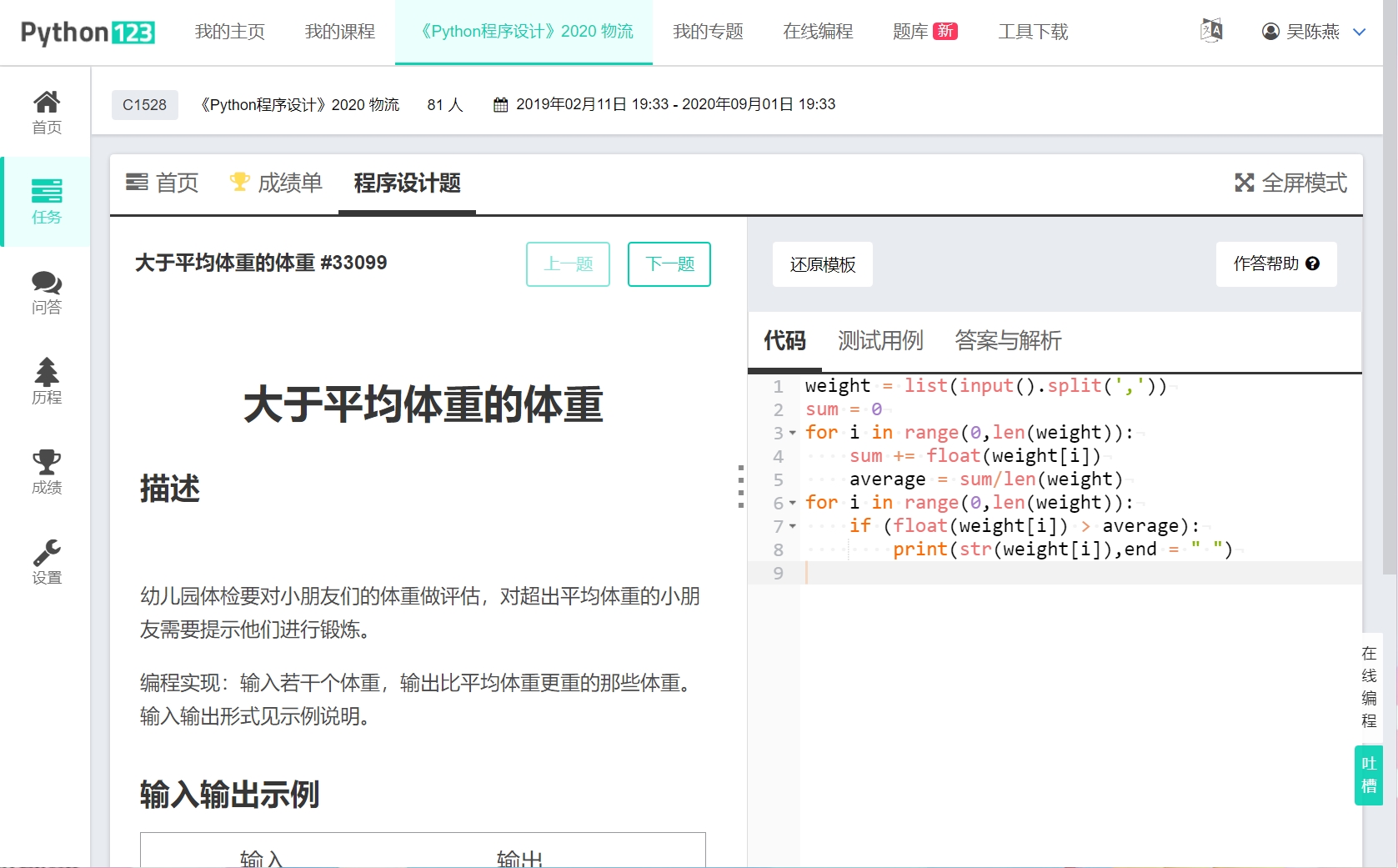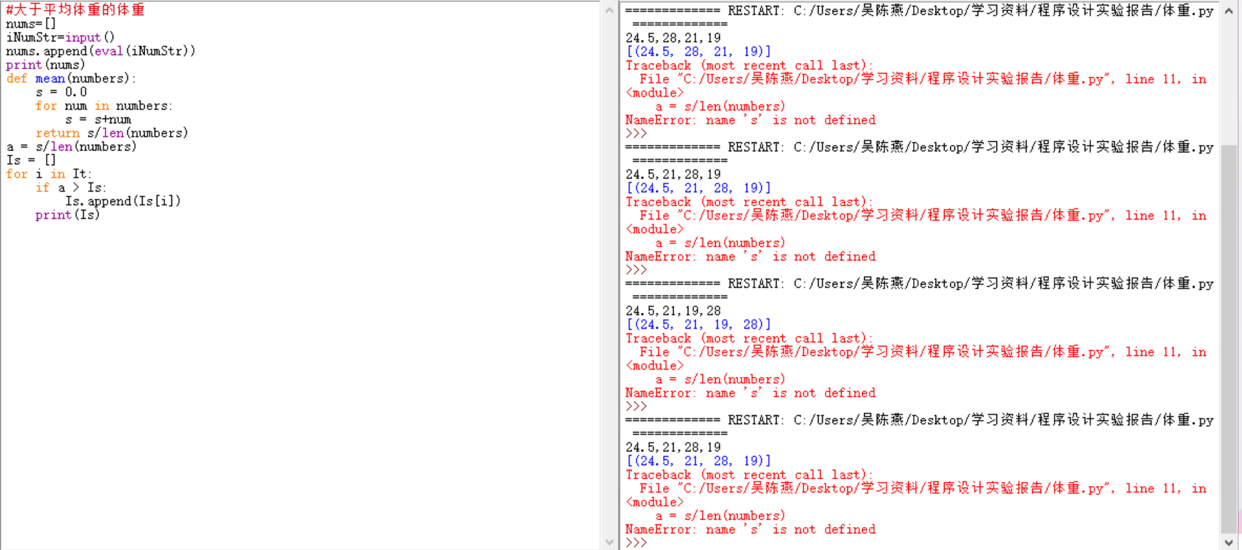编程实现:输入若干个体重,输出比平均体重更重的那些体重。输入输出形式见示例说明。