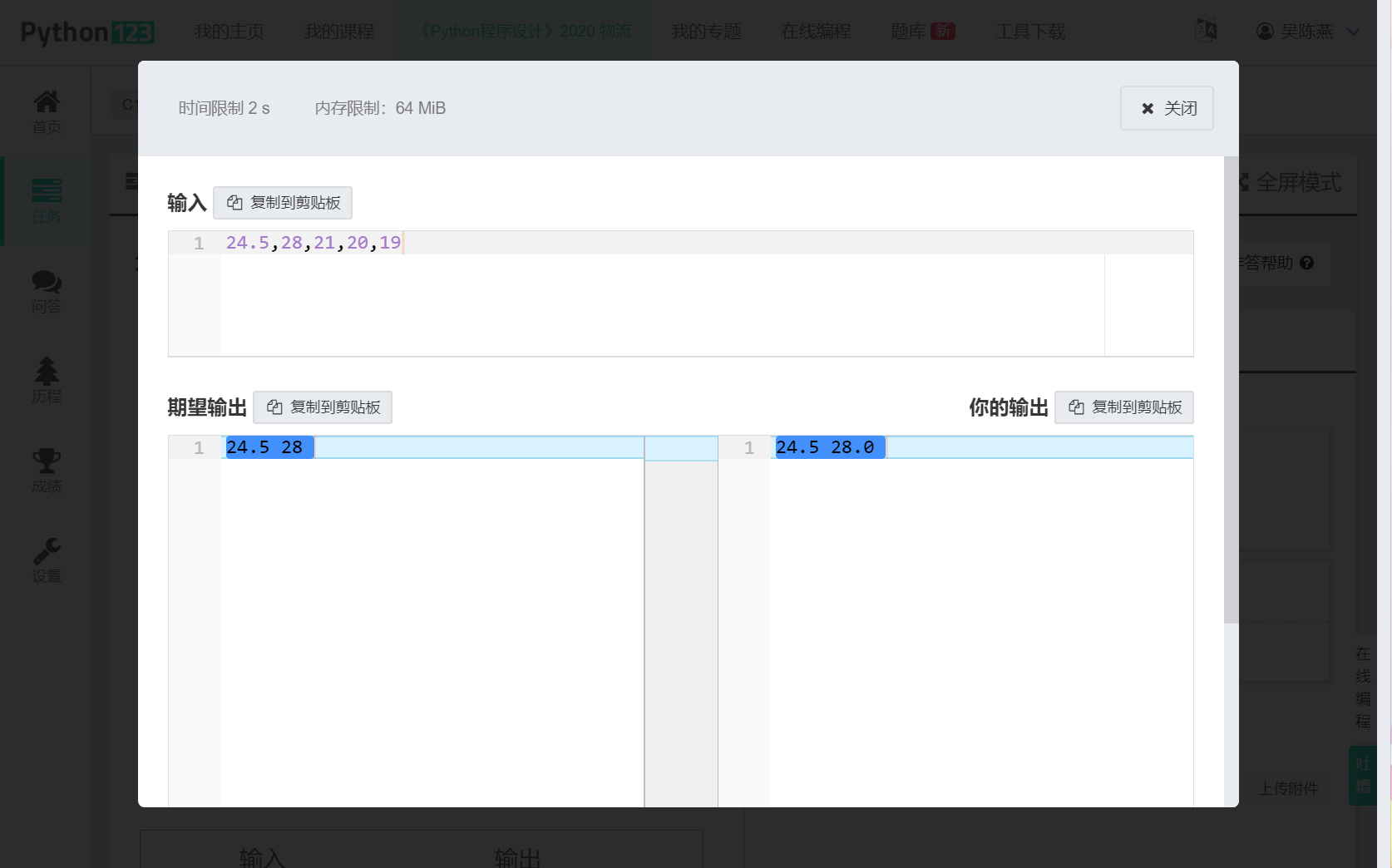 4,输出的结果数据类型不符合,再次修改,正确,如图。