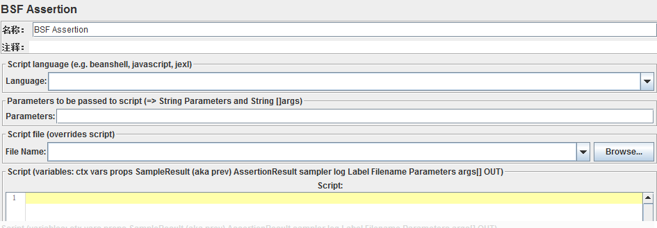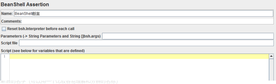 parameters to be passed to script(=> String Parameters and String []args):(传递给脚本的参数→可以理解为使用BSF断言脚本时候一起引用的参数 )
