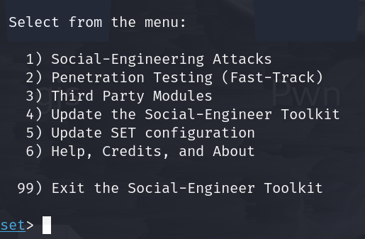 - 更新社会工程师工具箱(Update the Social-Engineer Toolkit) 更新SET到最新版本,以确保你拥有最新的功能和安全修复。