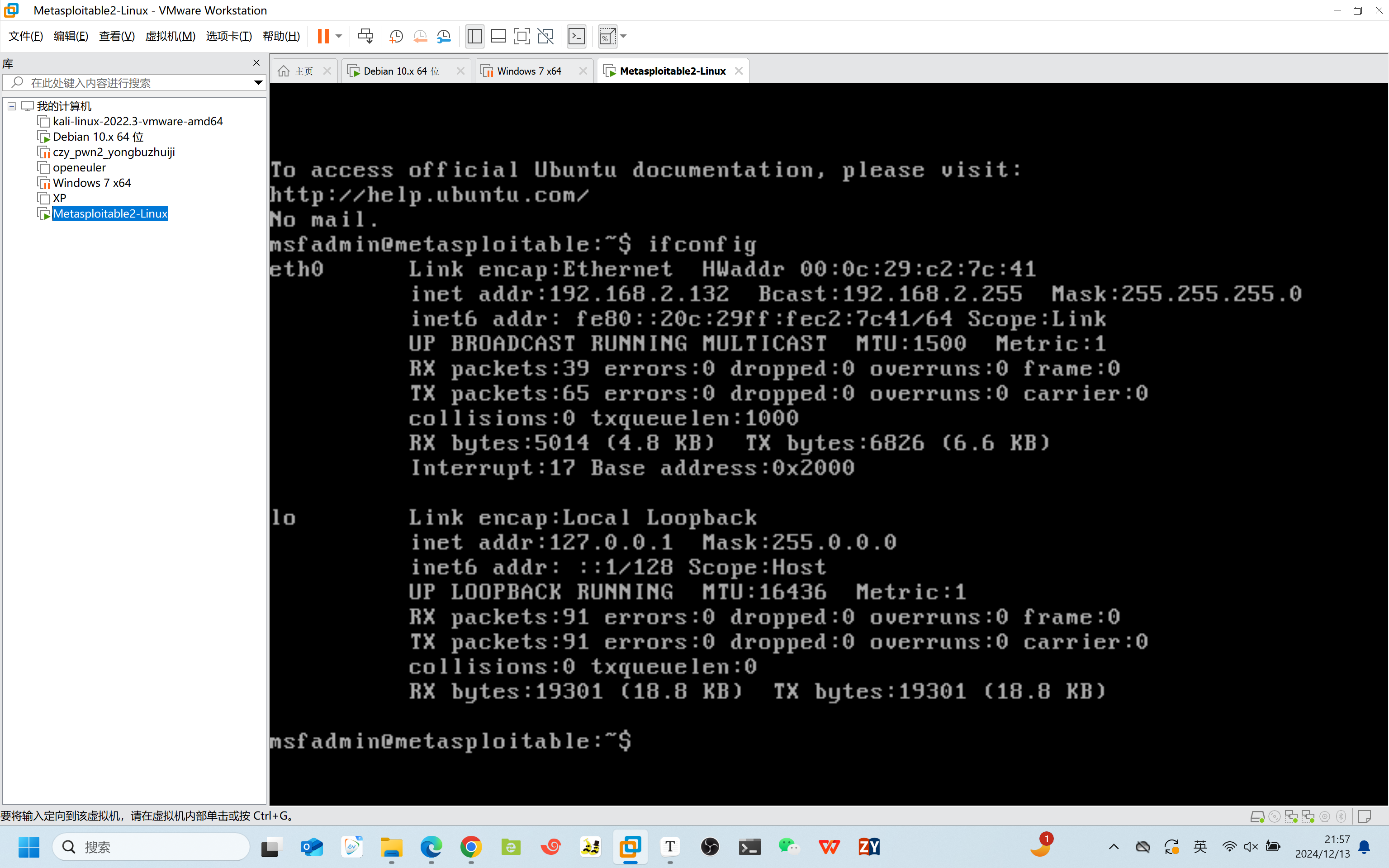 查看靶机 Metasploitable2 (Linux)的IP地址:192.168.2.132