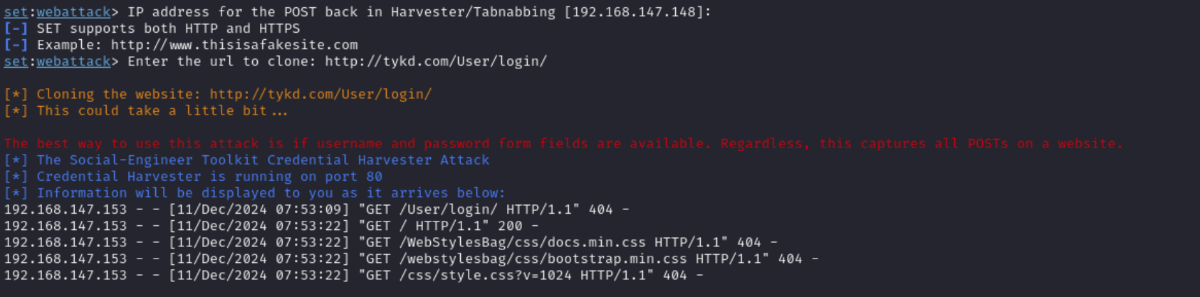 - Site Cloner(网站克隆器): 这个选项允许用户完全克隆他们选择的任何网站。克隆的网站将包含与目标网站相同的布局、样式和功能,但可以在攻击者的控制下运行。通过克隆网站,攻击者可以利用与目标网站相同的界面和功能来欺骗用户,收集敏感信息或执行其他恶意操作。