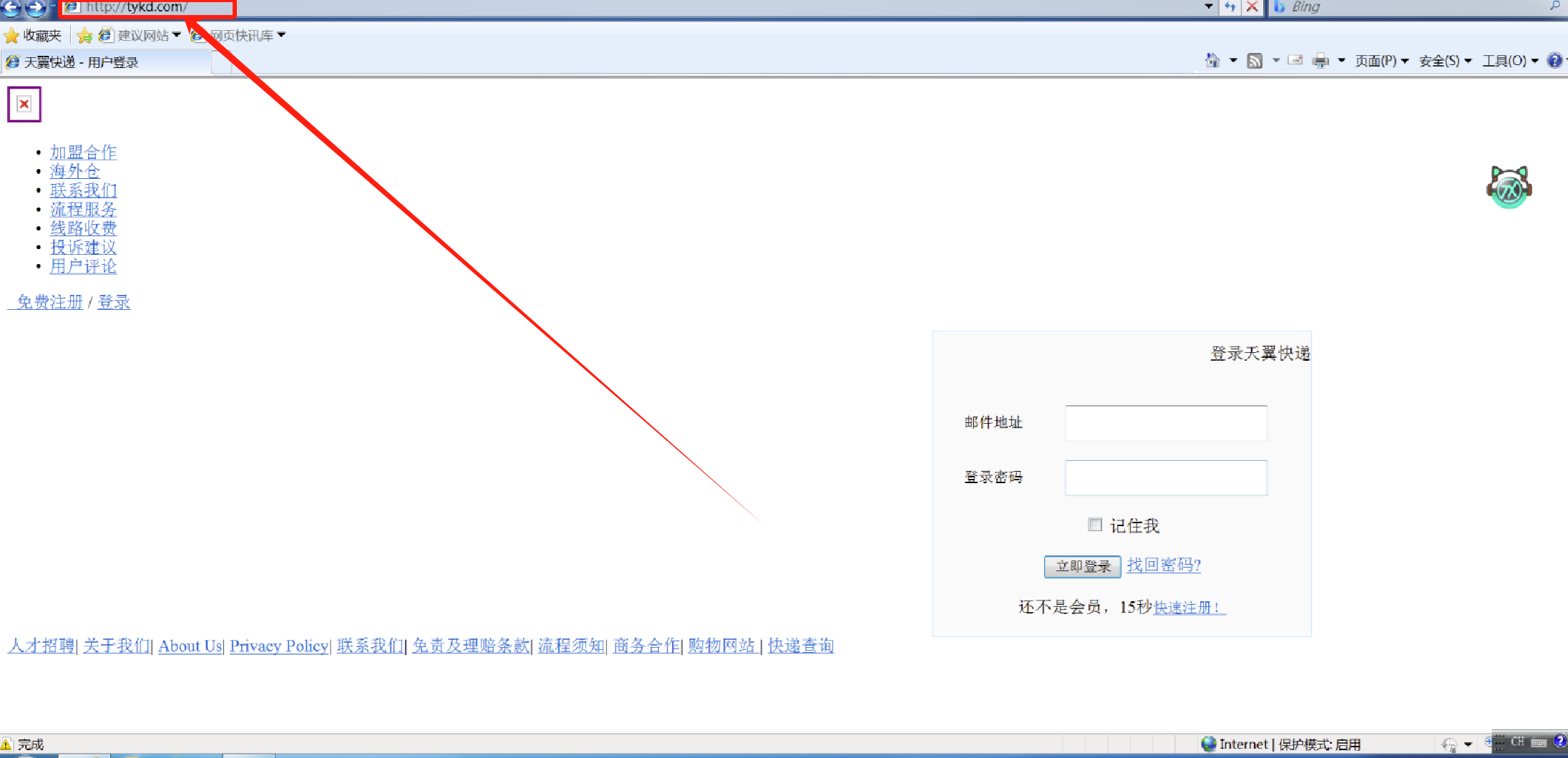 在靶机中访问 http://www.tykd.com/ ,但其实靶机打开的是攻击机克隆的登录网页,但显示的却是伪造的域名而不是攻击机的IP地址。
