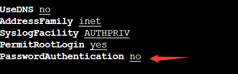 找到 PasswordAuthentication yes 修改为no 注:阿里轻量在最后一行