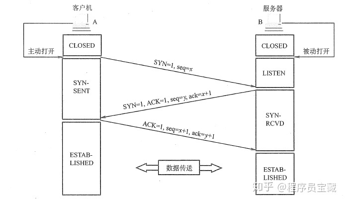 - 第三次握手:当客户机收到确认报文段后,还要向服务器给出确认,并且也要给该连接分配缓存和变量。这个报文段的ACK 标志位被置1, 序号字段为x+1, 确认号字段ack=y+1。该报文段可以携带数据,若不携带数据则不消耗序号http中的tcp连接的第三次握手的报文段中就捎带了客户对万维网文档的请求。