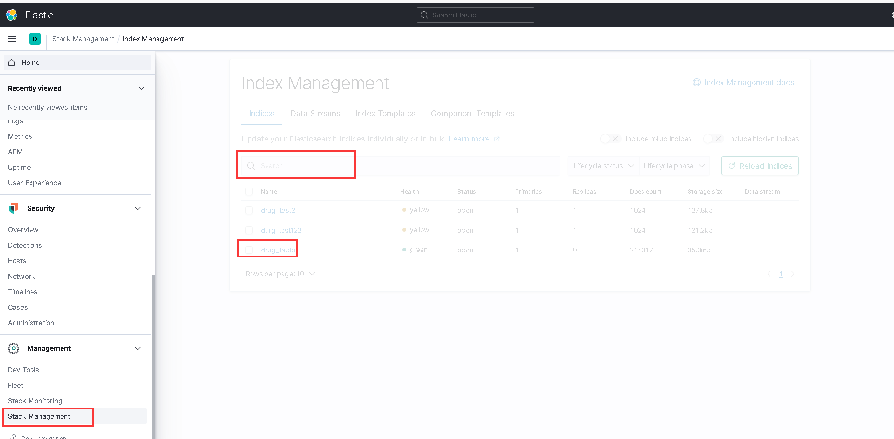 可查看导入的索引