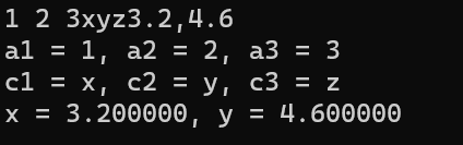 double x, y; char c1, c2, c3; int a1, a2, a3;