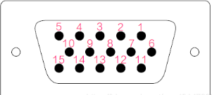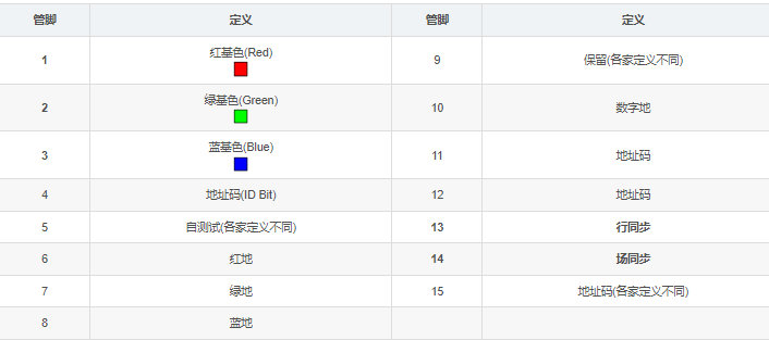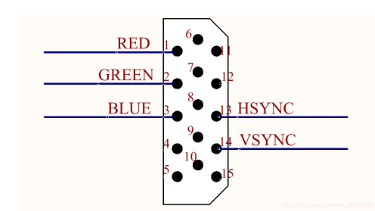 在15个管脚中,其中比较重要的是3根RGB彩色分量信号和2根扫描同步信号HSYNC和VSYNC。