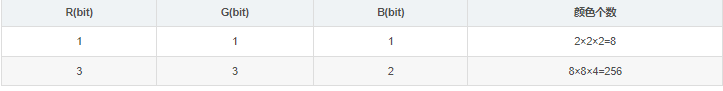 R(bit) G(bit) B(bit) 颜色个数