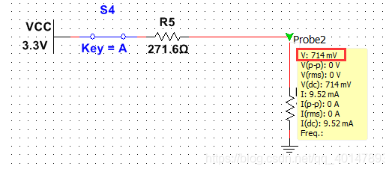 将R1阻值选择为271.6Ω,仿真得出VGA_RED引脚输入电压确实为0.714V。