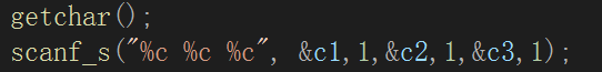scanf_s("%c %c %c", &c1,1,&c2,1,&c3,1); /*这里是被改错的行*/