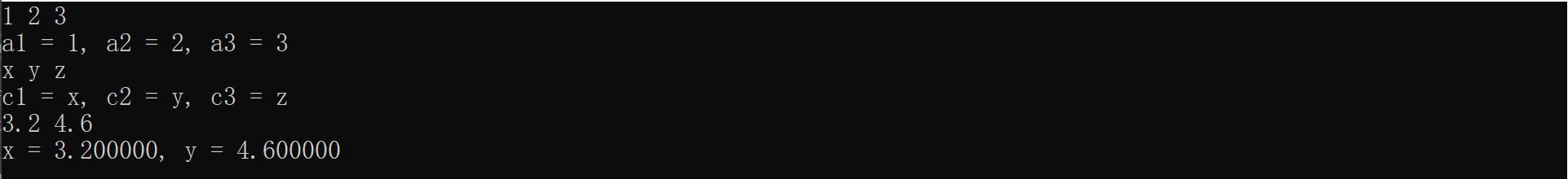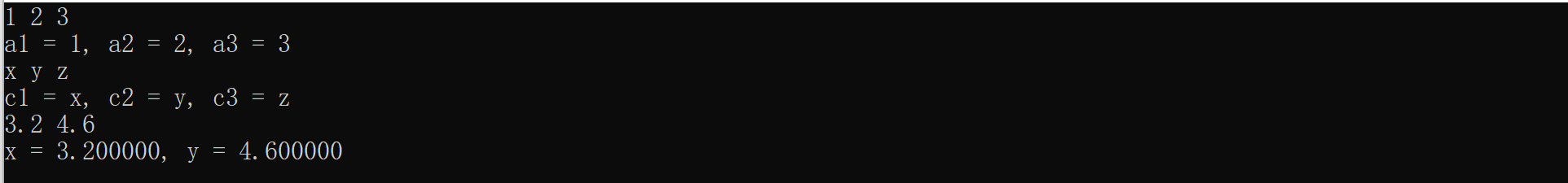 scanf_s("%d %d %d", &a1, &a2, &a3); /*这里是被改错的行*/