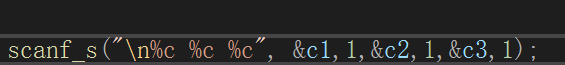 scanf_s("\n%c %c %c", &c1,1,&c2,1,&c3,1); /*这里是被改错的行*/