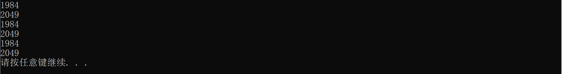 #include <stdio.h> #include <stdlib.h> #define N 4 int main() { int x[N] = {1, 9, 8, 4}; int i;int *p; // 方式1:通过数组名和下标遍历输出数组元素 for (i = 0; i < N; ++i) printf("%d", x[i]); printf("\n"); // 方式2:通过指针变量遍历输出数组元素 (写法1) for (p = x; p < x + N; ++p) printf("%d", *p); printf("\n"); // 方式2:通过指针变量遍历输出数组元素(写法2) p = x; for (i = 0; i < N; ++i) printf("%d", *(p + i)); printf("\n"); // 方式2:通过指针变量遍历输出数组元素(写法3) p = x; for (i = 0; i < N; ++i) printf("%d", p[i]); printf("\n"); system("pause"); return 0; }