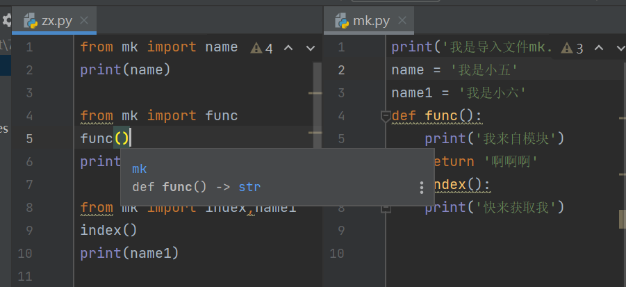 - 导入模块的两种句式