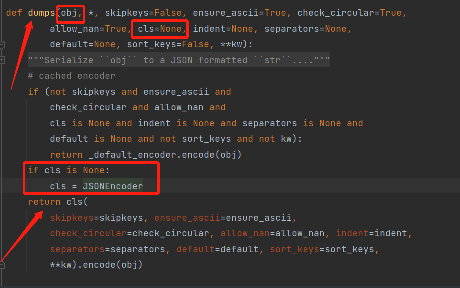 # 通过查看json.dumps 和 json.JSONEncoder 的底层源码 我们发现